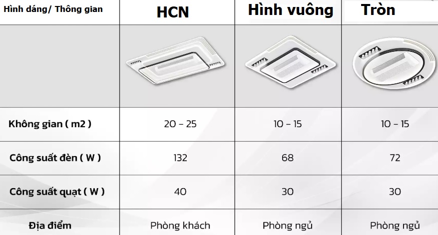 Hiện tại Vento đang phân phối 3 mẫu đèn quạt trần, gồm hình chữ nhật, hình vuông và hình tròn. Các mẫu đèn đều có tính năng như nhau và khác nhau về một số thông số kĩ thuật.
