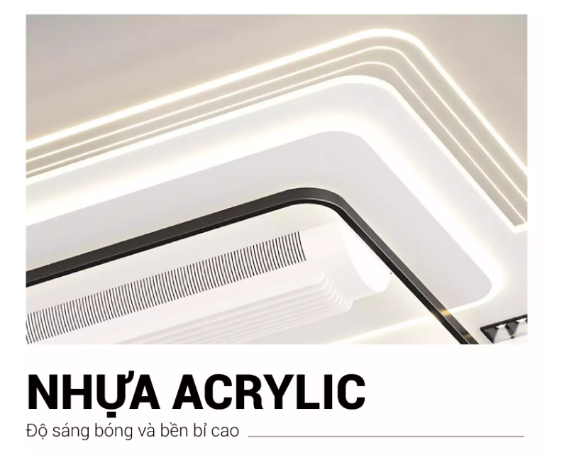 Đèn quạt trần thông minh sử dụng nhựa Arcrylic, có độ sáng bóng và bền bỉ cao,  không chứa các chất độc hại như thủy ngân và chì, thân thiện với môi trường và an toàn cho sức khỏe.